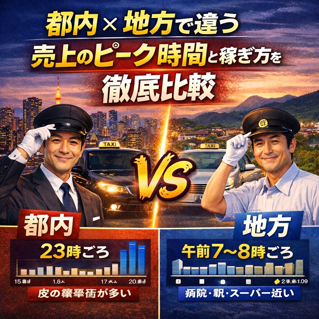 - 都内は深夜特化・配車依存型、地方は常連客獲得・地域密着型という異なる戦略で収入を最大化する